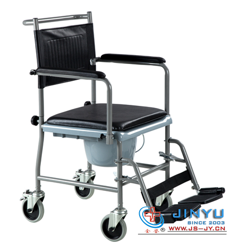 止滑脚板;前轮为5"万向轮;后轮为5"带刹车万向轮;配有可移动便桶。